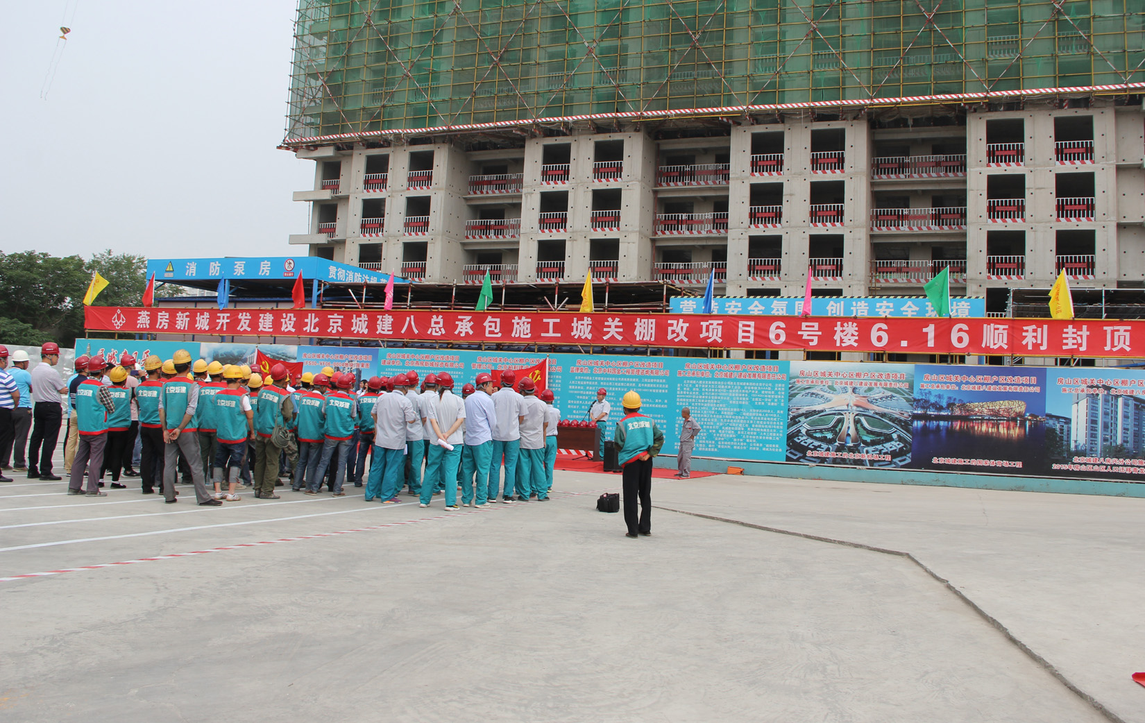 6月16日上午,城关街道举行城关中心区棚户区改造北关村回迁安置房项目6#楼封顶仪式,城关街道办事处相关负责人、北关村相关人员、北京燕房新城公司代表、北京城建八公司代表等人员出席活动。